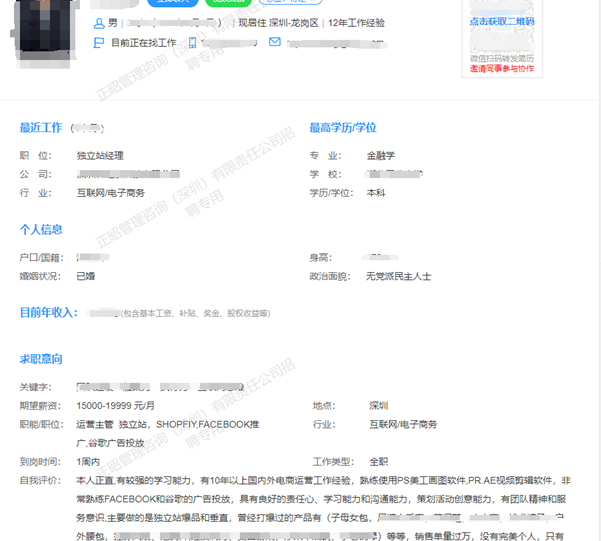 注:为保护候选人隐私,避免暴露信息过多,以上简历截图源于三位候选人简历(均来自eBiz-CHO前程无忧简历库)