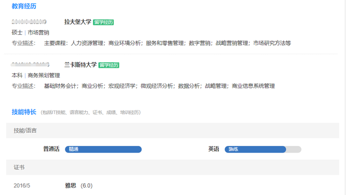 注:为保护候选人隐私,避免暴露信息过多,以上简历截图源于三位候选人简历(均来自eBiz-CHO前程无忧简历库)